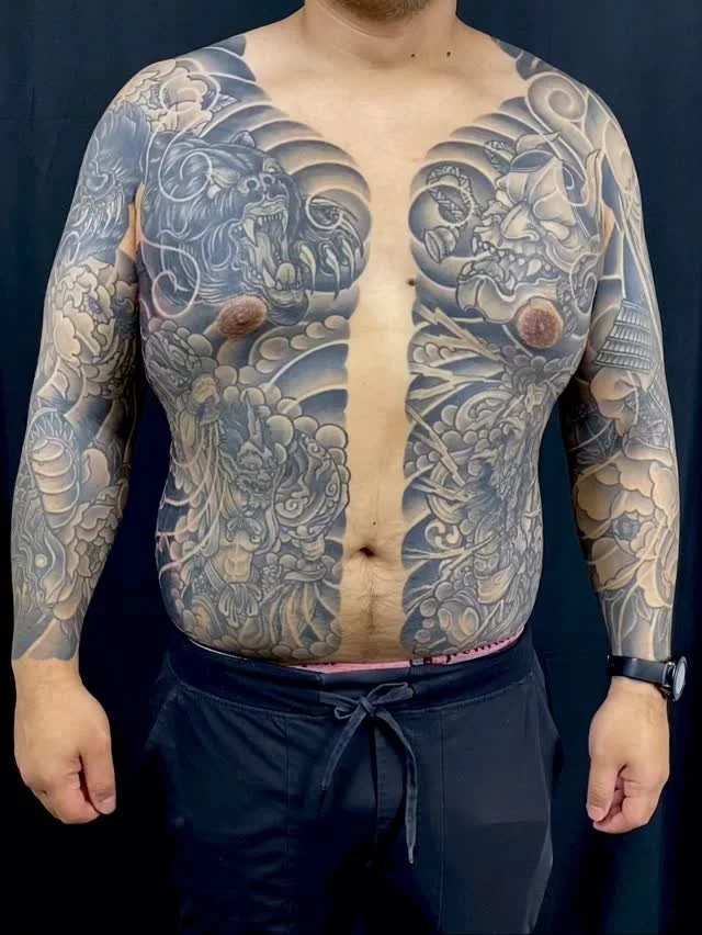 "I've spent over 150 hours under the needle with Cohen Floch at Paradigm Tattoo over the past 11 years, and I can confidently say he’s one of the best in the business. From traditional Japanese to mandala and American-style work, Cohen’s versatility and dedication to his craft are unmatched. I’m now on the final stretch of a full body suit, and every piece has been thoughtfully designed and masterfully executed. What began as a professional relationship has naturally evolved into a genuine friendship—when you spend that much time together, it’s hard not to. Cohen brings not just skill, but integrity, focus, and a relaxed vibe to every session. I highly recommend him to anyone looking for quality, meaningful, and expertly done tattoos."